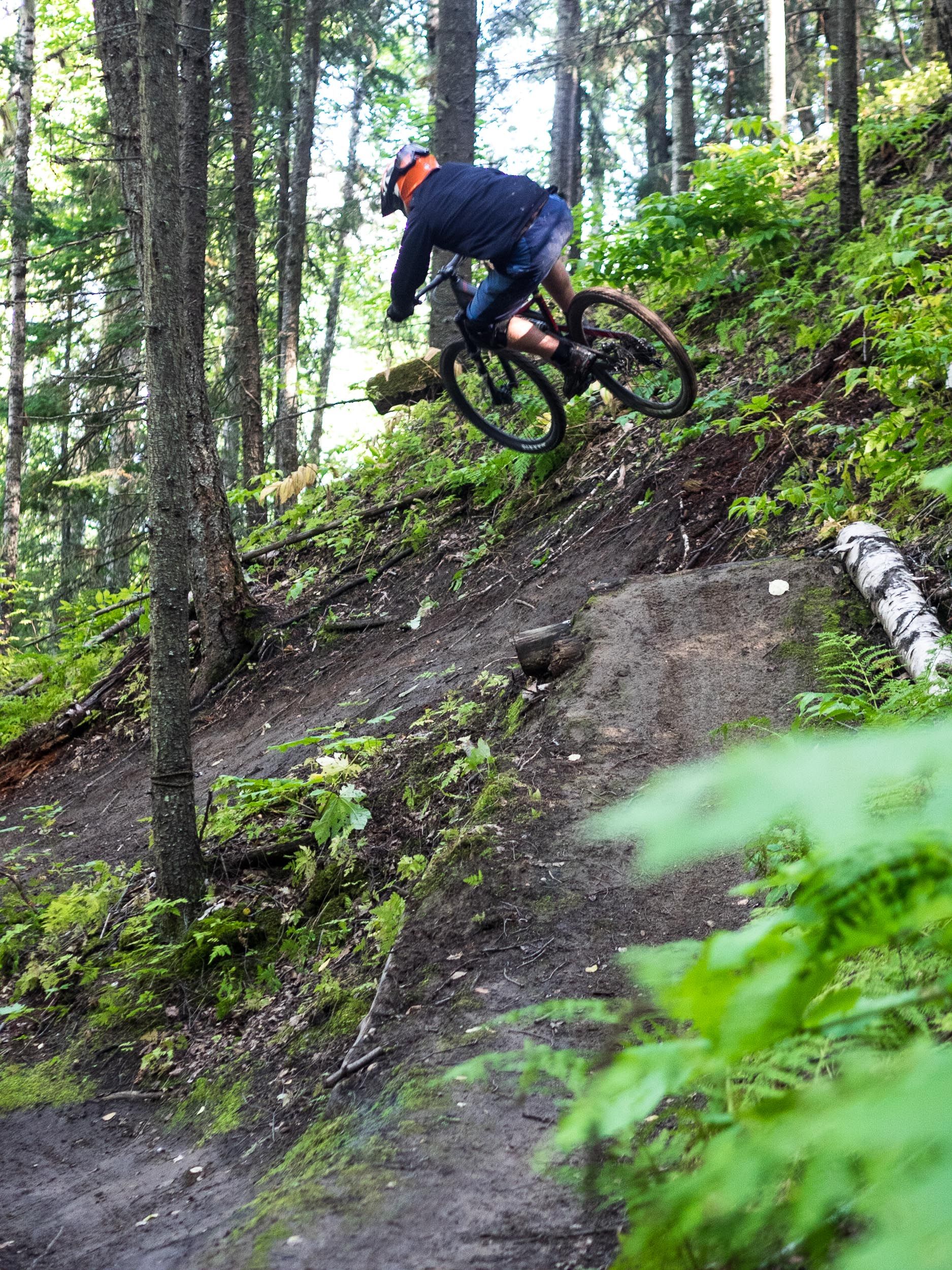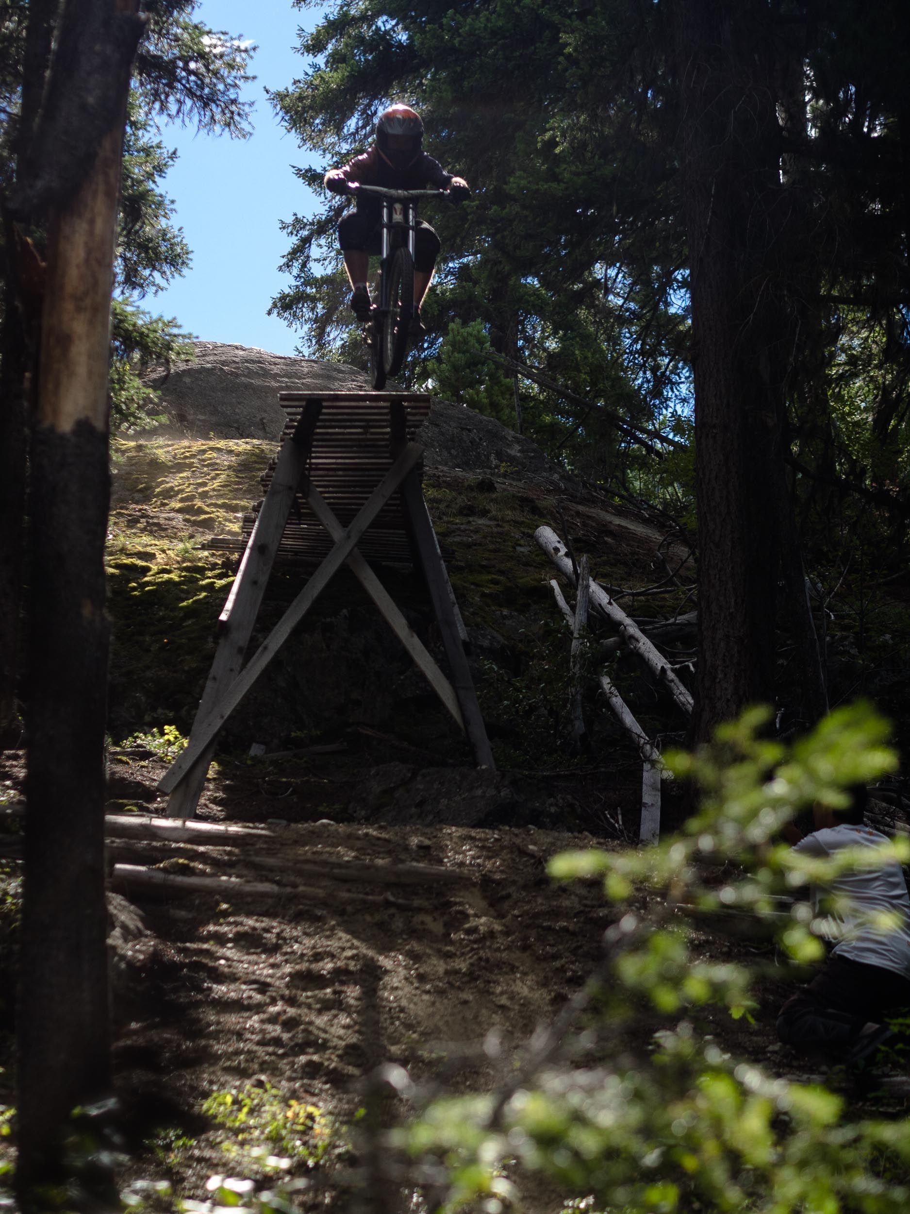 5 minutes later, on the same trail. The second I’ve chased Graham back to the top – he’s already dropping in.